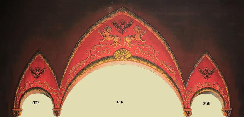 CUT OUT SIZES: the side openings are 5′-3″H/9′-7″W; the CNTR is 12′-0″H/30′-7″